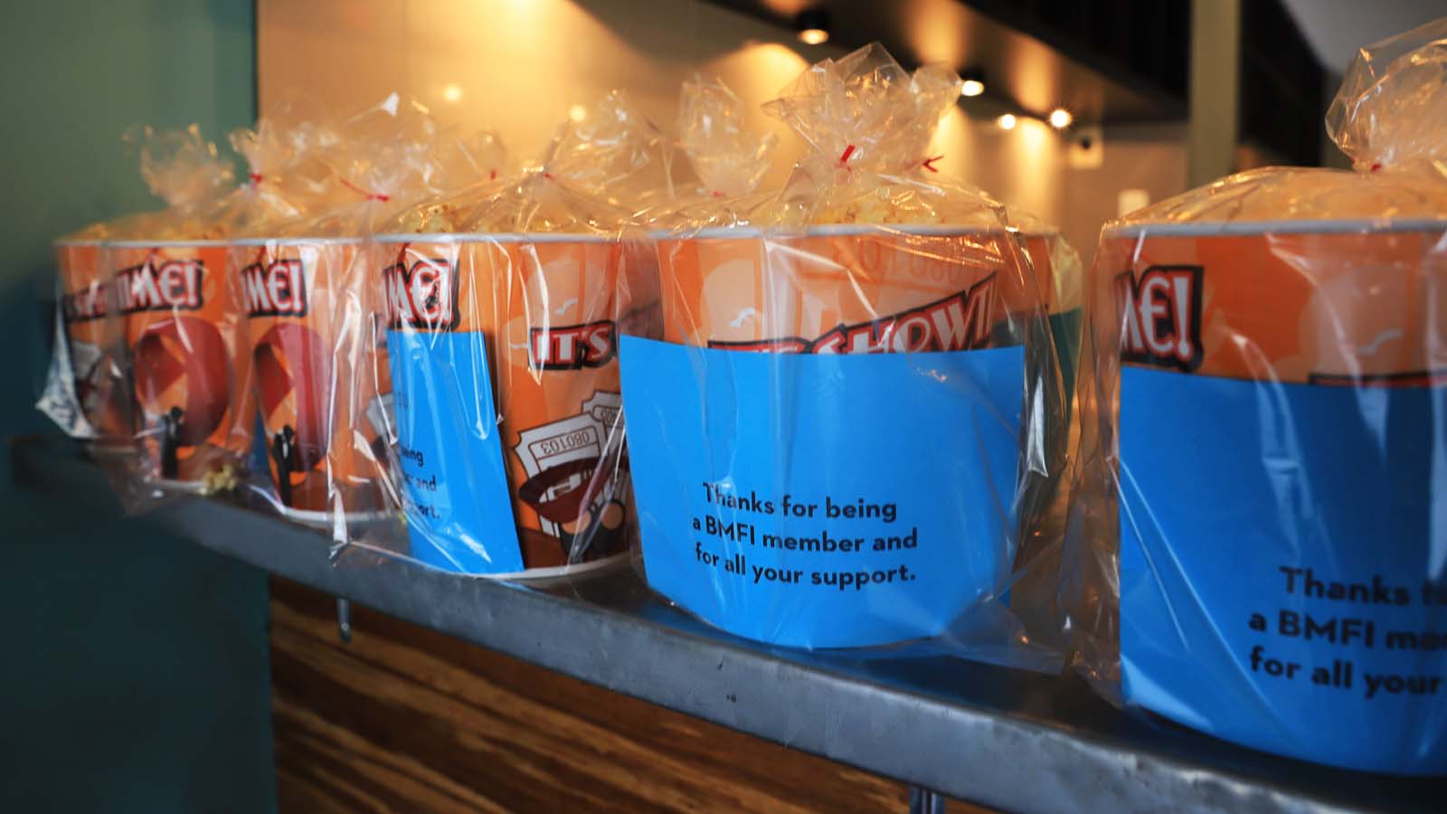 Of course, movies and classes weren’t the only way BMFI kept its members engaged during those dark days of 2020. One of our most memorable offerings during that time was “Corn on the Curb,” where our loyal supporters could make a reservation for a car-side delivery of the fresh, hot, and tasty BMFI popcorn that they had been missing. The whole staff took turns delivering the warm bags of joy to patrons who pulled their cars alongside the theater on Lancaster or Central Avenues. Even with all parties masked, seeing the familiar (upper) faces of our most committed patrons was a wonderful reminder of what BMFI means to our community.