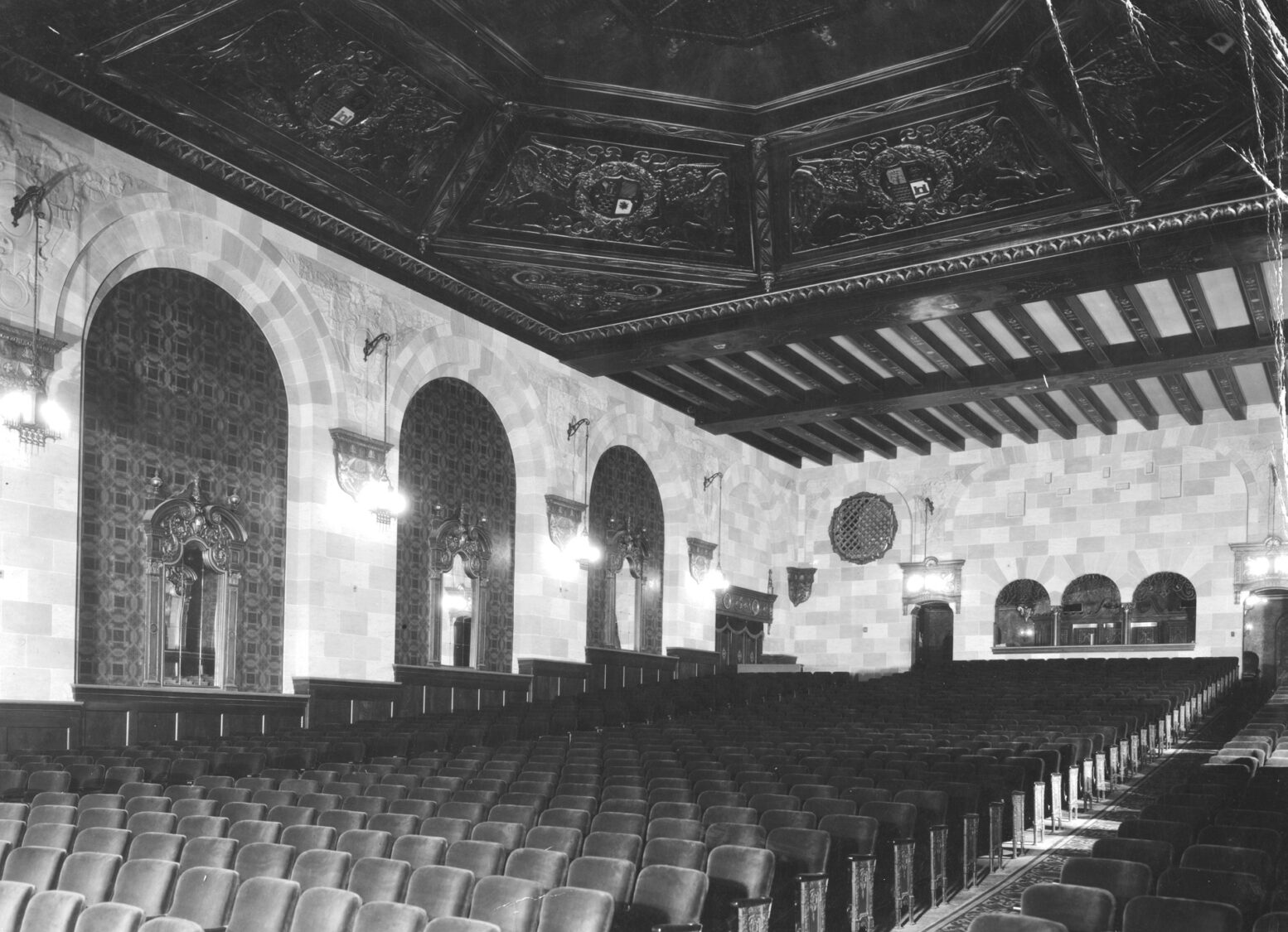 Since purchasing the derelict theater building in 2005, the main atrium entrance had been draped in tar paper, perforated by broken skylights, and caged in scaffolding. Restoring this wing of the historic building required both structural and artistic expertise, uniting a team of architects, sculptors, painters, plasterers, artisans, and electricians from Pennsylvania, New York, Chicago, and Bulgaria.